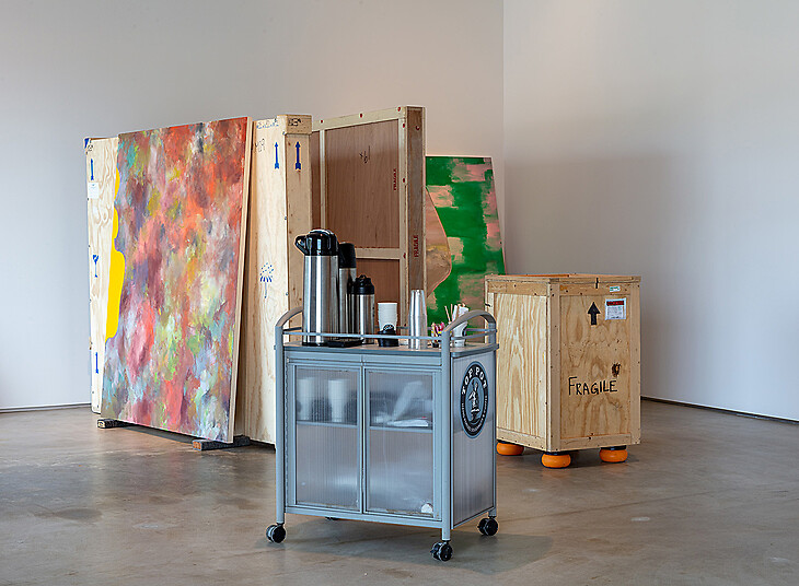Schwarz's situationally narrative sculptures, paintings and installations operate by unapologetically asking the viewer to consider not only the mostly incongruous collection of objects they are looking at, but where they are located, their circumstance (often tragi-comic) and the sorted, messy, and often absurd relationship between the two. As Bill Davenport noted in the 2014 Glasstire review of Schwarz’s Retrospective, “each new work is another instance of Schwarz applying Schwarz, like barbecue sauce, to new situations.”