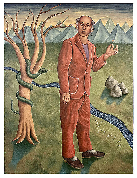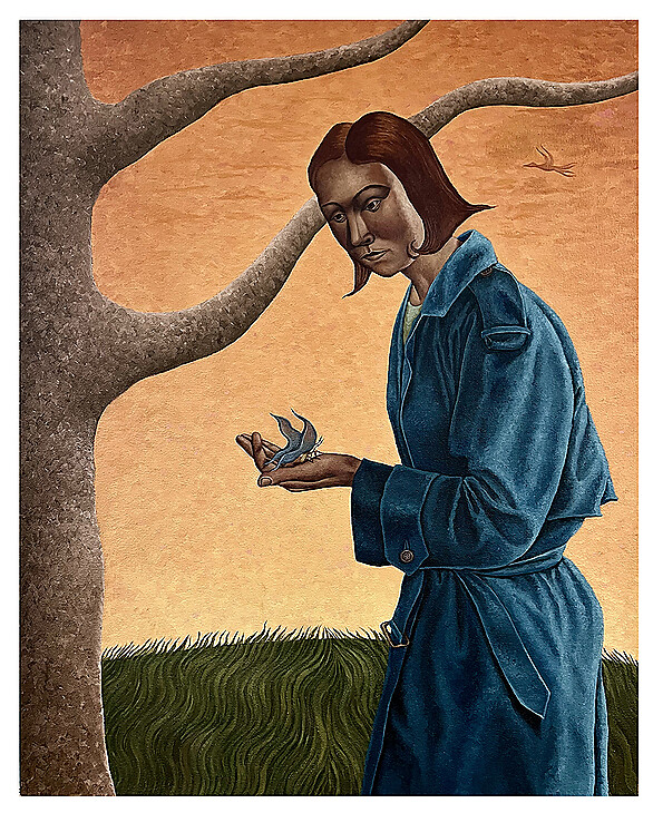 Carson Monahan (b.1985, Detroit, MI) is a self-taught painter recognized for seamlessly merging classical beauty with contemporary narratives. Raised in Ann Arbor, Michigan, he was immersed in art from an early age, but it was not until his mid- thirties that he considered pursuing it as a career. Though Monahan did receive some formal training during a year of art school, he eventually earned a bachelor’s degree in entrepreneurship. He pursued various paths from fish mongering to fashion design, while catering to an incessant desire to travel and broaden his perspective, and to seek to comprehend the human condition. Alas, his artistic roots kept beckoning, guiding him toward a life committed to create.