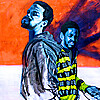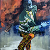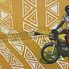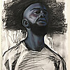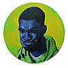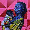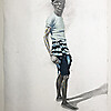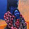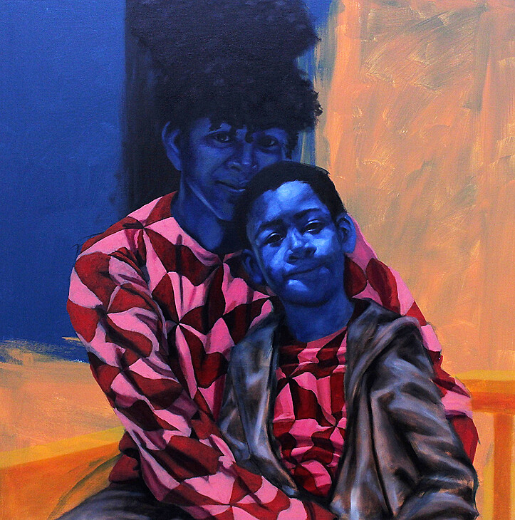This new awareness led Evans to create a body of work that is a visual call and response; pairing individual and group portraits of the Nigerians he met with self-portraits, as well as portraits of friends and family. Each work in the exhibition has a mate; a separate but connected work of art that illustrates the direct connections between people through dress, pattern and atmosphere. With delicate brush application, Evans models his subjects with a precision that feels cared for and personal. Often, especially in the case of his Nigerian portraits, the pattern of dress specific to his subjects travels onto the skin of the bodies and faces.