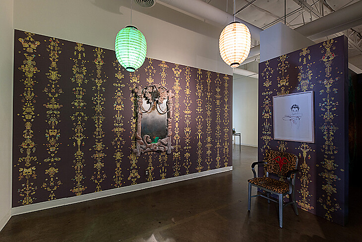 Fontenot is an interdisciplinary artist, having developed a significant body of work in the early 1990’s as an experimental filmmaker while his current studio practice is largely focused on figurative painting and drawing. His background in film has led to an ongoing interest and capability to physically manifest installations or “sets” onto which his paintings and drawings are installed. Fontenot’s exceptionally designed and detailed environments point to the connections Fontenot illustrates between design and sexual fetish e.g., Fontenot’s two previous solo exhibitions at Conduit Gallery, 2012’s Homosexuals Are Ruining My Life and 2009’s Get Your Wood On.