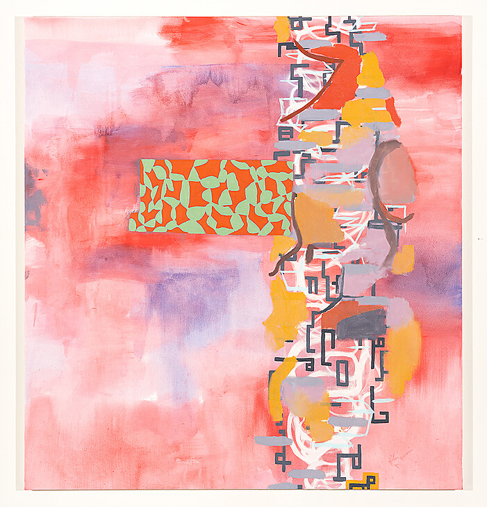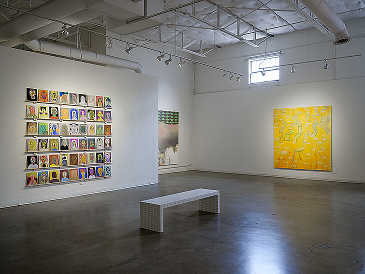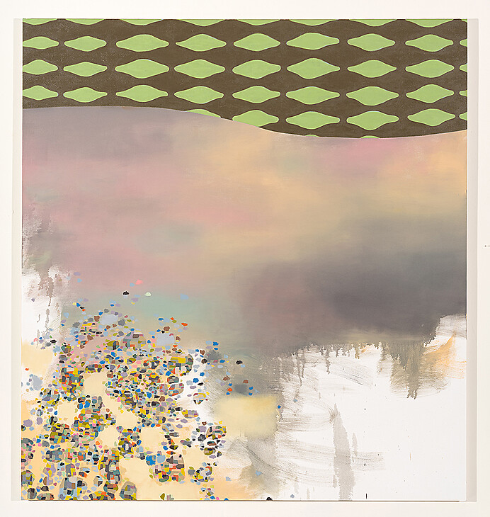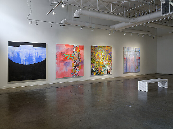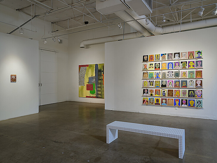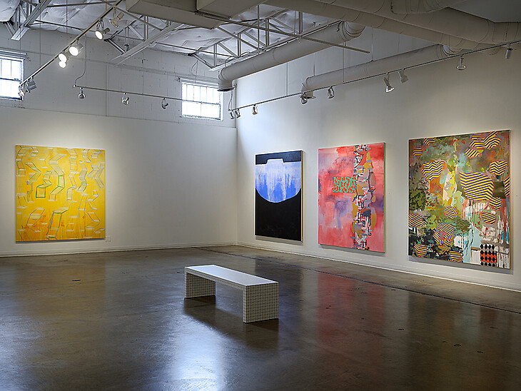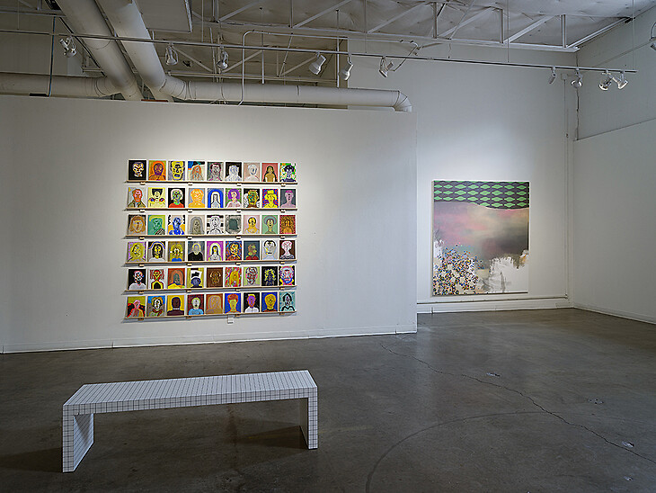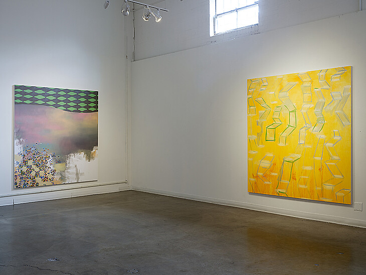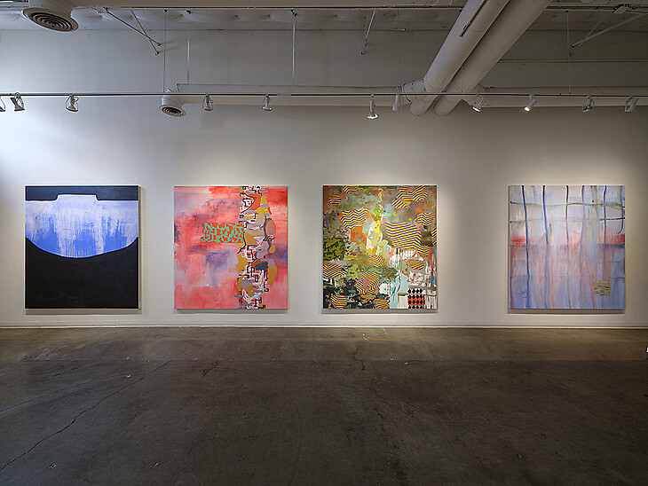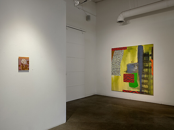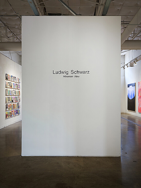 Ludwig Schwarz's paintings, though not didactic, compel the viewer to consider not only the composition on the picture plane, but what exists outside the boundaries of the canvas. His paintings defy expectations by interrupting serene color fields with rhythmic patterns ensconced along the edges of the image. His large scale oil on canvas works make up the exhibition alongside a series of small gouache "portraits" on linen.