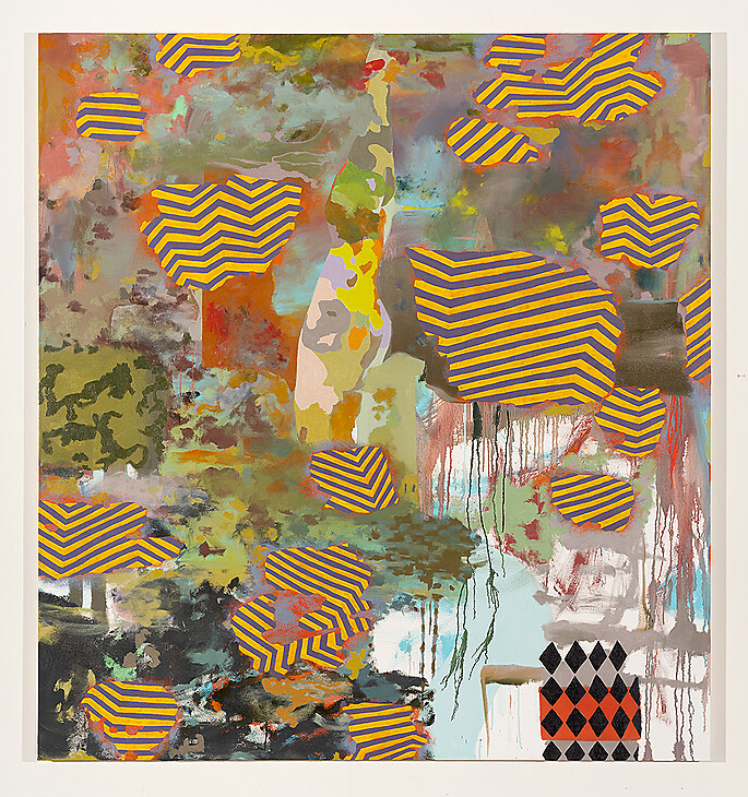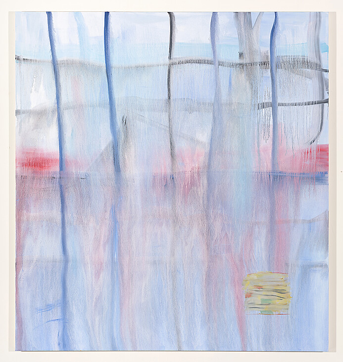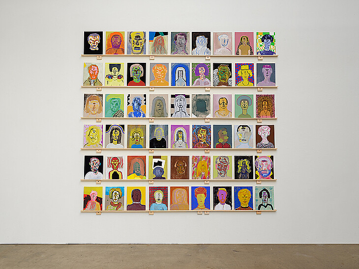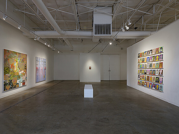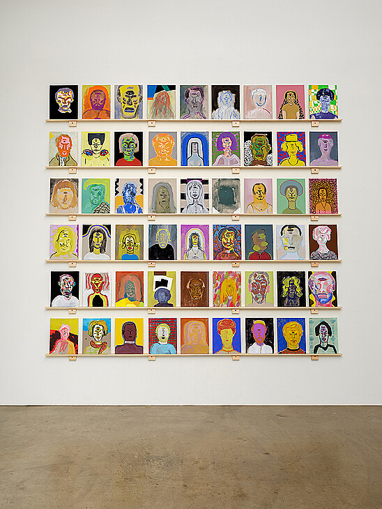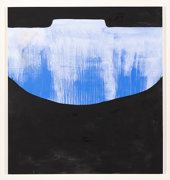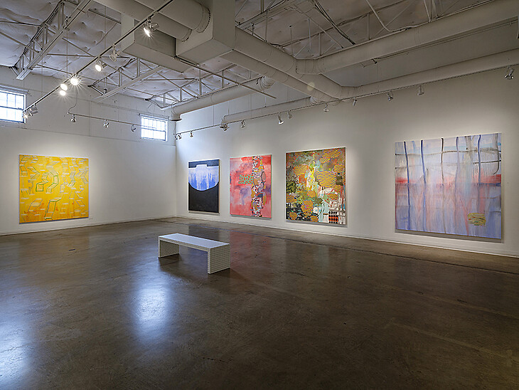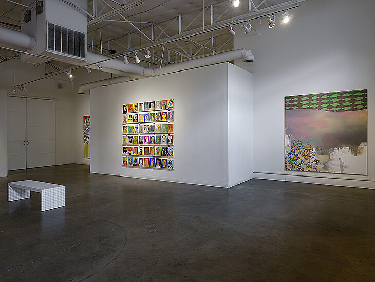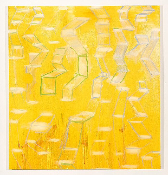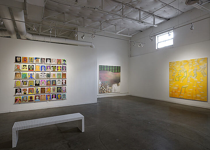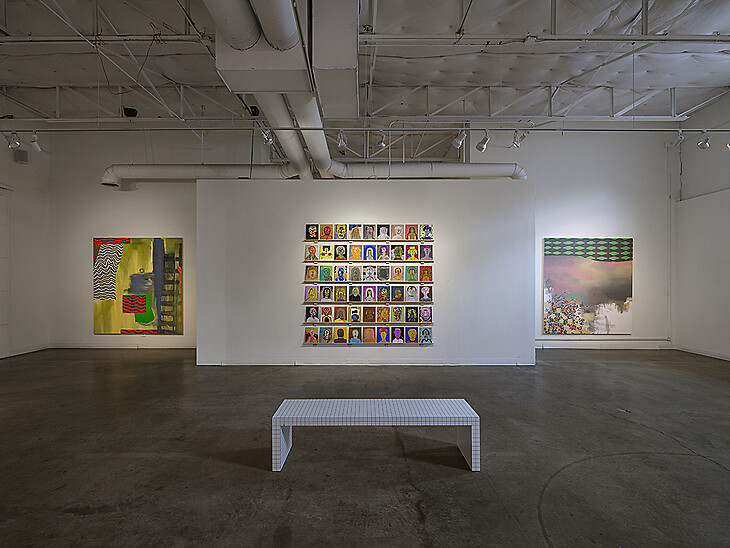 Ludwig Schwarz's paintings, though not didactic, compel the viewer to consider not only the composition on the picture plane, but what exists outside the boundaries of the canvas. His paintings defy expectations by interrupting serene color fields with rhythmic patterns ensconced along the edges of the image. His large scale oil on canvas works make up the exhibition alongside a series of small gouache "portraits" on linen.