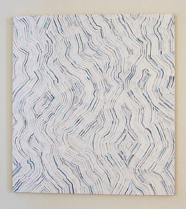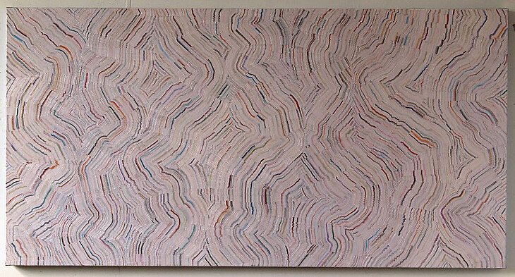 Continuing his investigation of abstract gesture, process, and expression, Mr. Falsetta's newest body of work features cascades and vertical striations of color that are at once streaming, free, spontaneous, controlled, partitioned, and deliberate. Using brushes, cardboard, spreaders, palette knives, and dry wall spatulas to achieve rich texture, Falsetta achieves deliberate spontaneity.