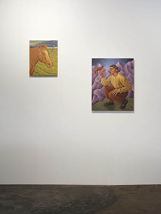 In Secret Magic Spirit World, Carson Monahan infuses seemingly ordinary moments with an otherworldly presence, heightening reality while blurring the boundaries between the physical and the spiritual. Elements of symbolism, particularly animal figures, appear throughout his surreal landscapes, emphasizing tension between natural instinct and mysterious occurrences that call our human intuition and awareness into question.