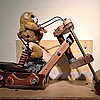 Using found objects and old toys as the residues of experience, Bret Stewart has fashioned a series of sculptures works which investigate the intersection of modern materialism, play and satire.