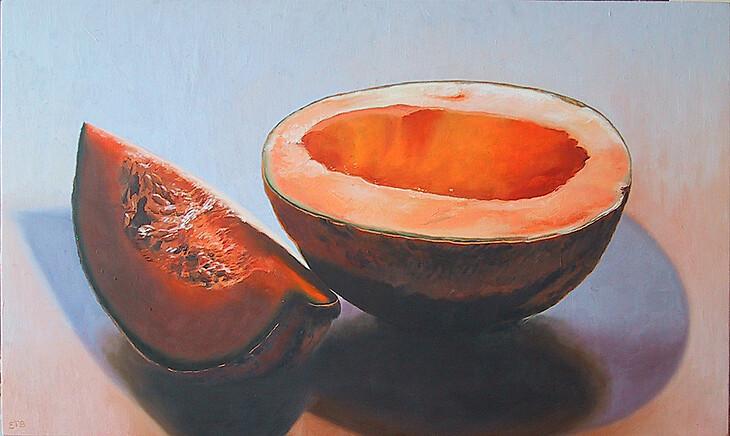 Often noted as a sensual painter, Ellen Berman fuses popular standards of perfection with a visual clarity so striking to the viewer, that one wonders if such objects can exist outside of an idealized imagination. Branches from the noble Magnolia tree, as well as a variety of fruits and vegetables and the bowls that contain them become both vehicles of the artists masterful hand and forever escape their temporal nature.