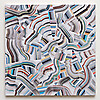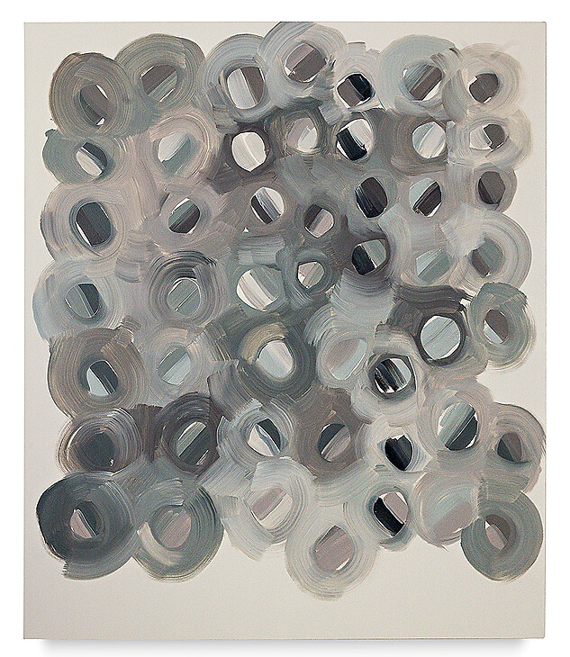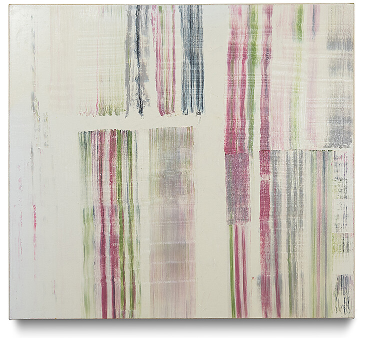 "My paintings, though distinctly abstract, tend to suggest waves of sound, light or seismic activity. They evoke the natural world while acknowledging the technology that measures or records it. Referenced also is the interaction with contemporary culture and the traditions of Modern Painting. The paintings are carefully planned in regard to palette and process, although the predetermined systems do allow for a large degree of improvisations. Many on-the-spot decisions are made, with results that form a strange blend between the appearance of spontaneity and the appearance of control. The paintings unfold as I make them – at times surprising or confounding my expectations. The idiosyncratic techniques of applying paint make the work feel painterly and at the same time feel meticulously rendered. I am interested in the actual physical properties of the paint, the plasticity of the medium and the painting as an object. I brush on, blend, and drag thick oil paint in wet-on-wet technique using various hand pressures, rhythms and speeds of movement producing pulsing multi-hued abstractions from a single unified paint film.